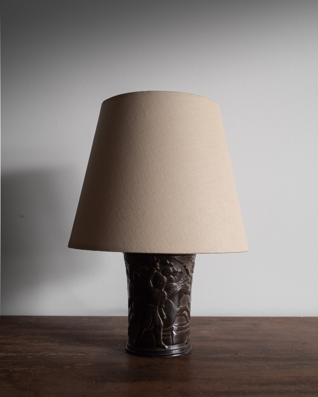 Vintage Relief Sculpture Stoneware Lamp