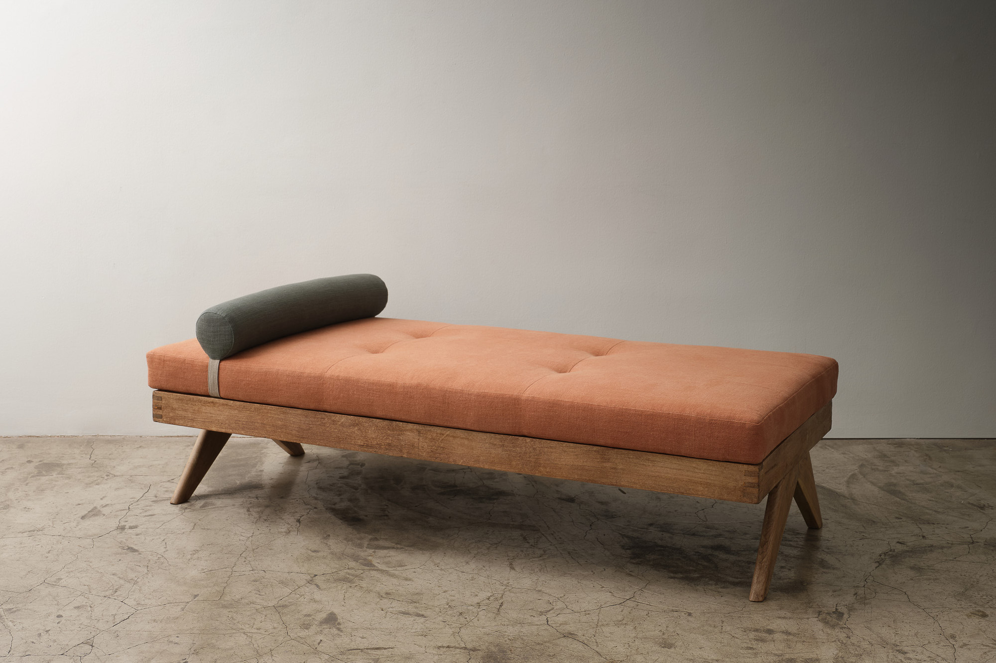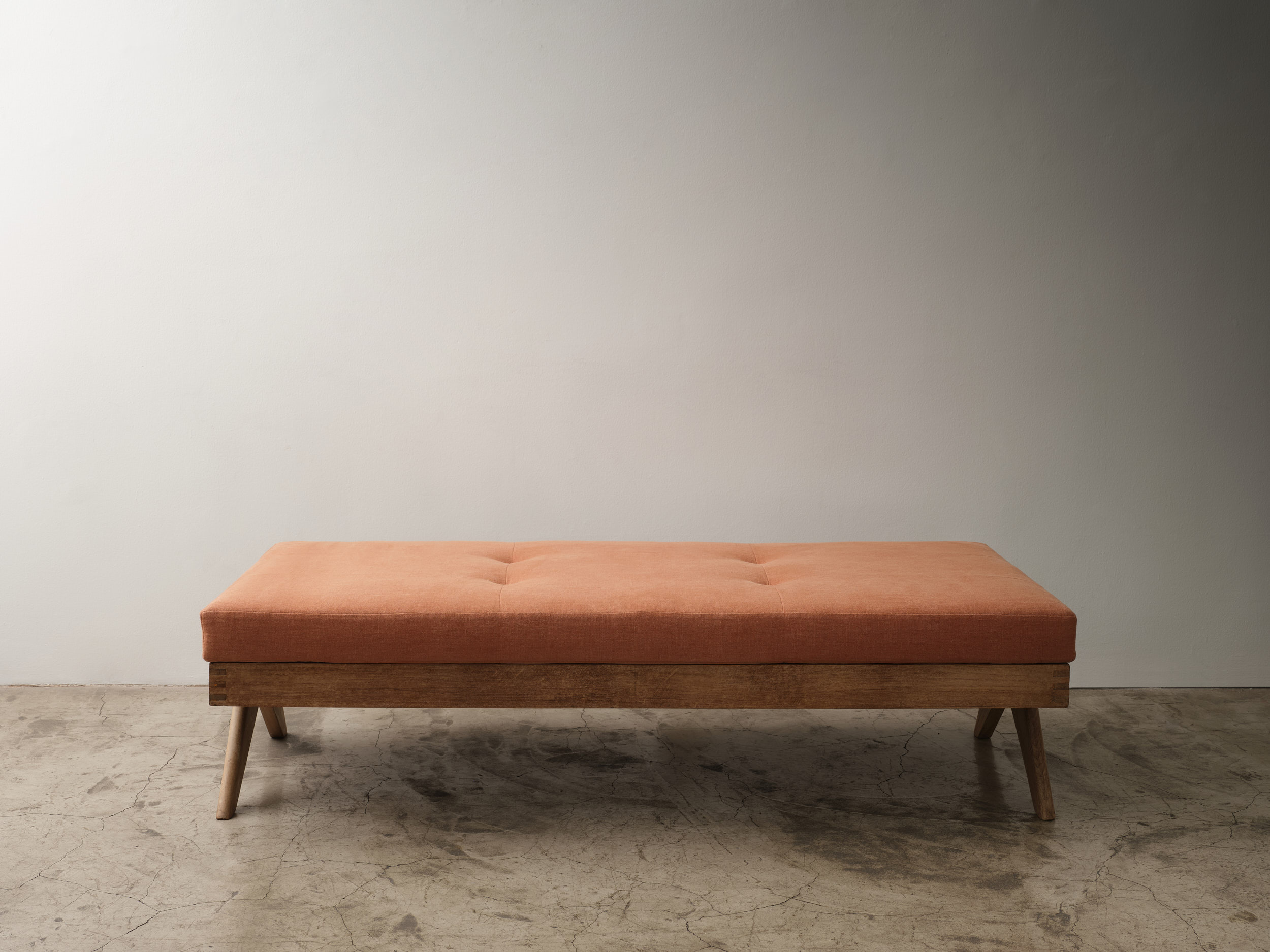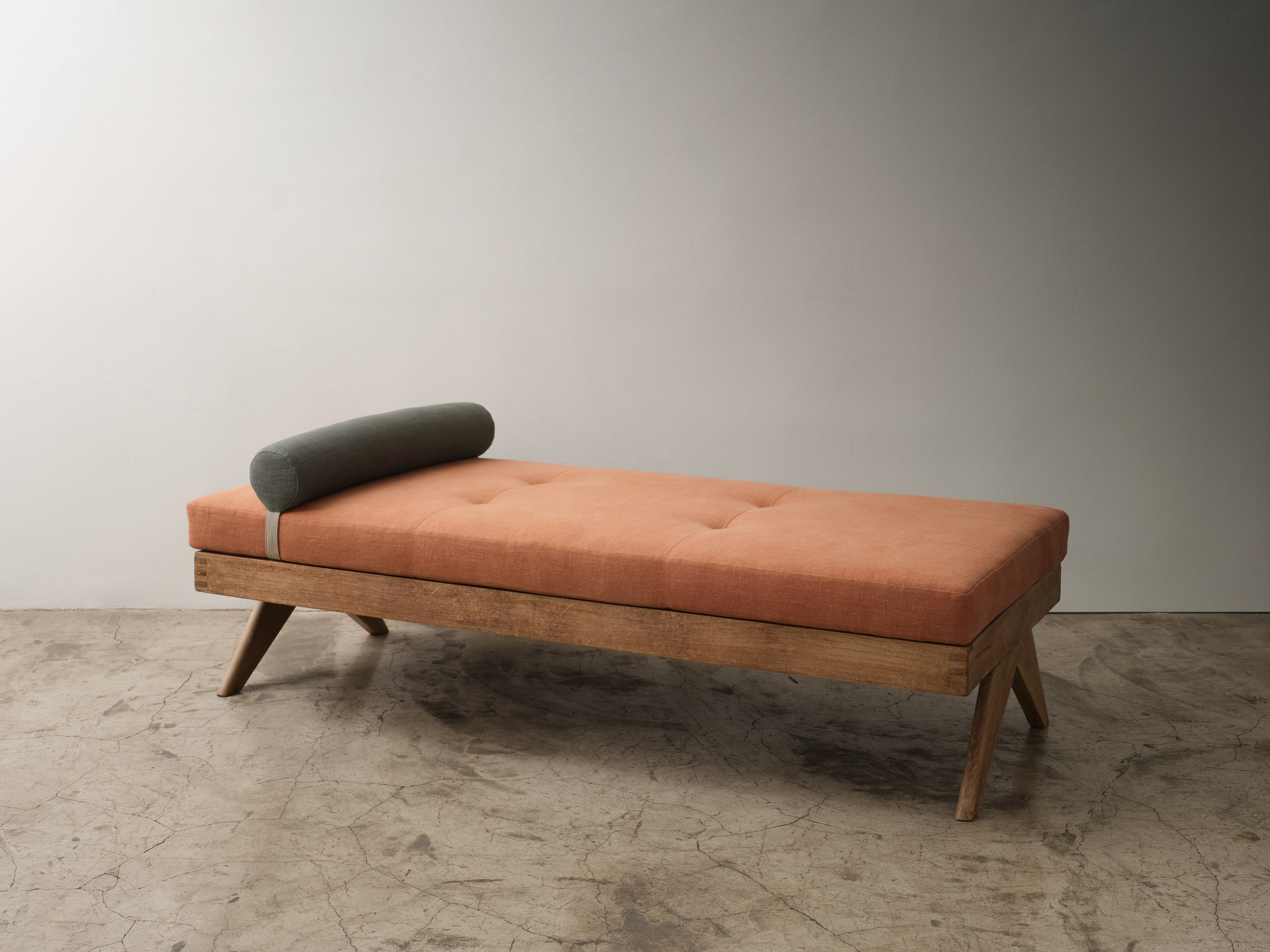 Cane and Teak Daybed Pierre Jeanneret Chandigarh, India, 1950's H 15.75 x W 53.94 x D 18.12 x SH 15.75 Condition - wear consistent with age. ITEMS SIMILAR Daybed in MahoganyDaybed in LinenDaybed in VelvetModel 775 Daybed