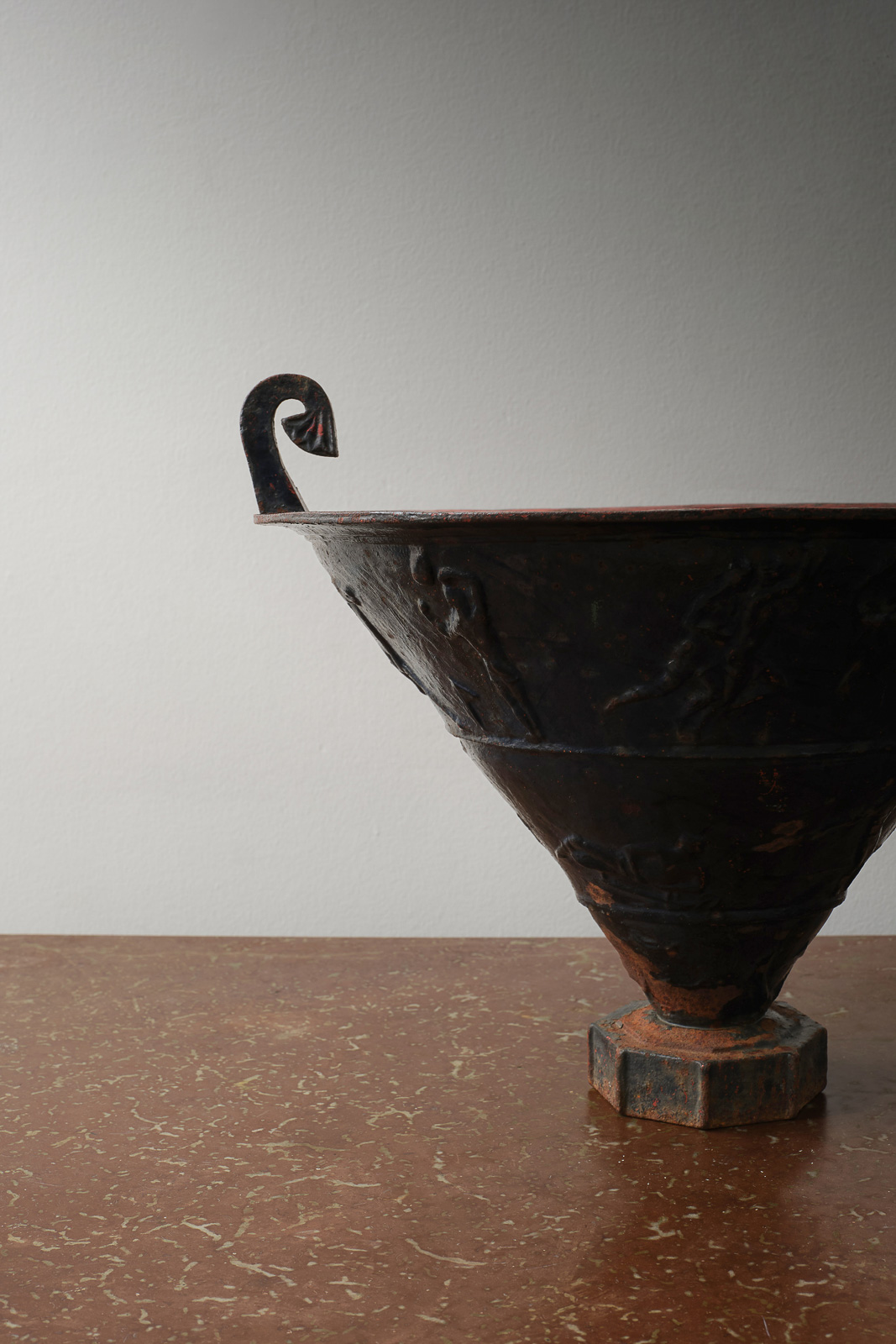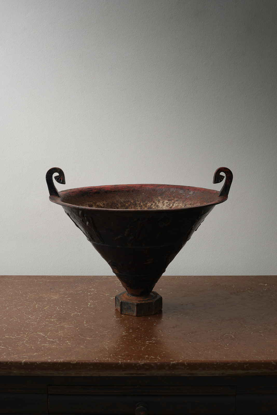 Cast Iron ‘Sporturnan’ Garden Urn Rolf Bolin Sweden, 1920's H 19 x W 23 Condition - wear consistent with age. ITEMS SIMILAR Terracotta Urn with LidMedici Form Garden UrnPatinated Cast Iron Urn