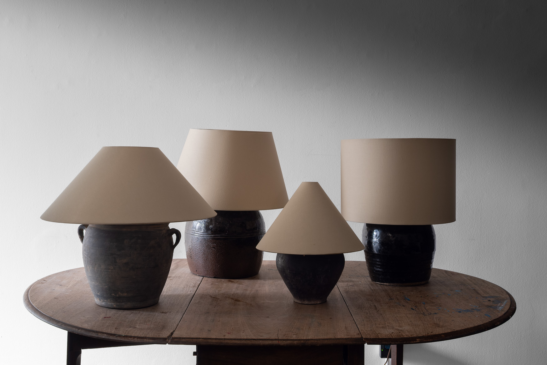 Group of Grain Lamps Anonymous Belgium, 19th Century Various Sizes Condition - wear consistent with age. 120V US Wiring. Left to Right: Gray Belgian Grain Lamp with Side Handles - H 19.5 x D 21.5 Large Rice Wine Jar Lamp - H 22.5 x D 19 Grain Bowl Lamp - H 10 x W 10 Black Spice Jar Lamp - H 21.5 x W 16 x D 16 ITEMS SIMILAR “PH-3/2” Oblique Floor LampMetal Table LampTable LampGeorge III Blue John Urn On Pedestal Lamp