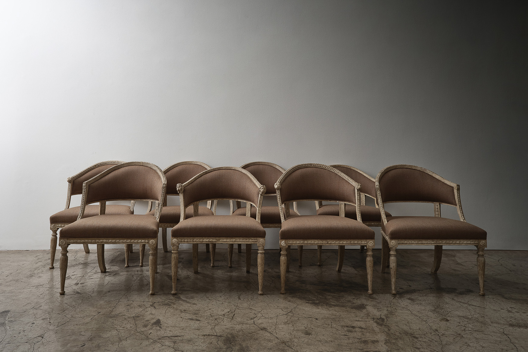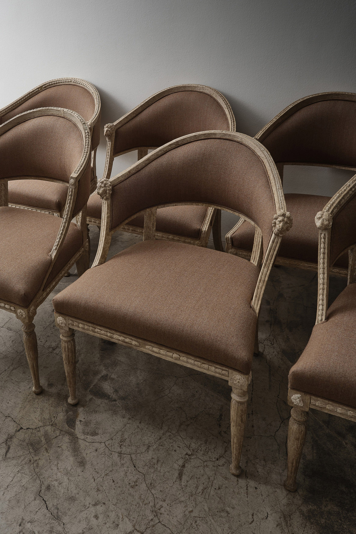 Group of Period Gustavian “Bali” Armchairs Erik Öhrmark Sweden, Late 18th Century H 32.75 x W x D x SH 19 Condition - wear consistent with age. ITEMS SIMILAR Set of Musician’s ChairsSet of Conoid ChairsT Back Dining ChairsPair of Danish Cabinetmaker Armchairs