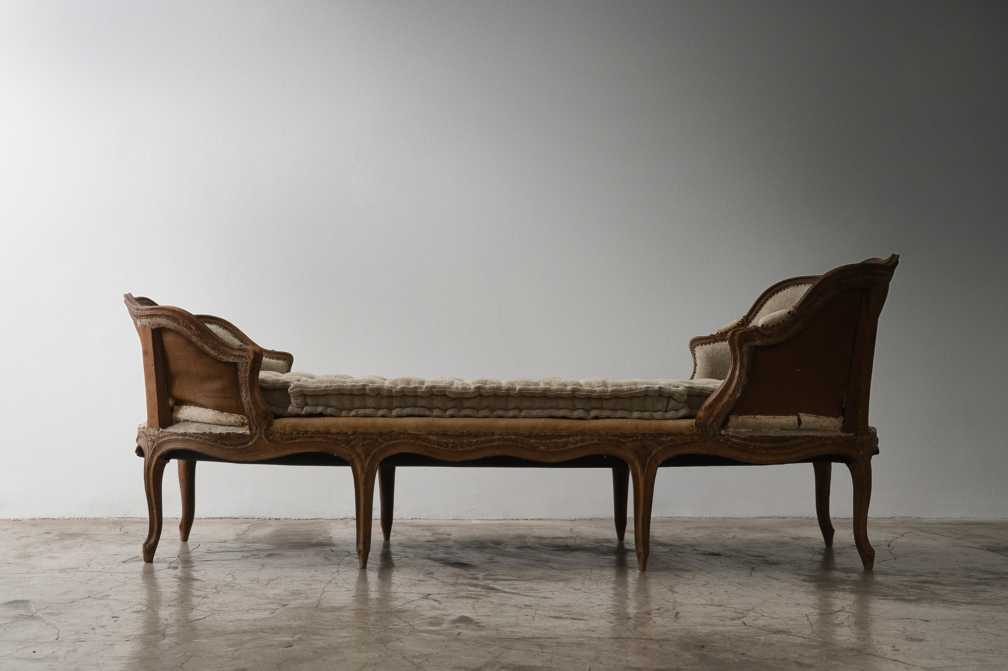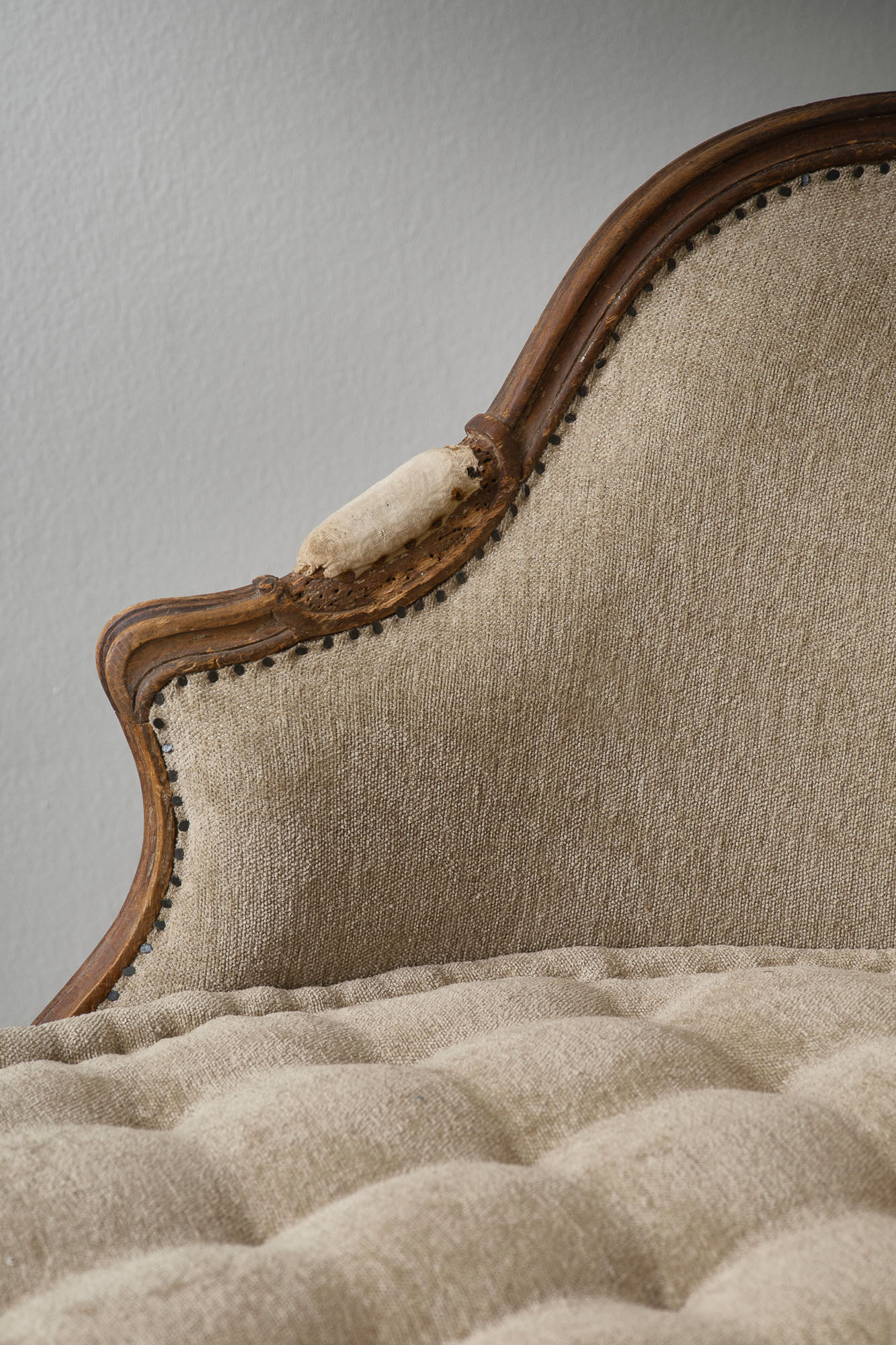 Louis XVI Meridienne in Linen Anonymous France, Early 19th Century H 29.5 x W 76 x D 26 x SH 16.5 Condition - wear consistent with age. ITEMS SIMILAR Massive Chaise LoungeChaise in LinenPernilla Lounge Chair