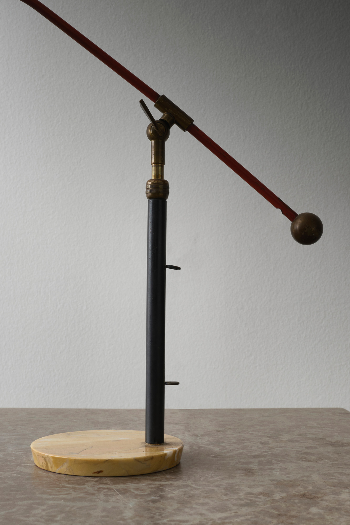 Model 5023 Desk Lamp Angelo Brotto Italy, 1950's H 21.25 x D 24 x W 8 Condition - wear consistent with age. 120V US Wiring. ITEMS SIMILAR Floor Lamp Model 12382Pair of Model 5017 Wall SconcesFloor Lamp 70XN with Petra Sandstone BaseLuminator Floor Lamp
