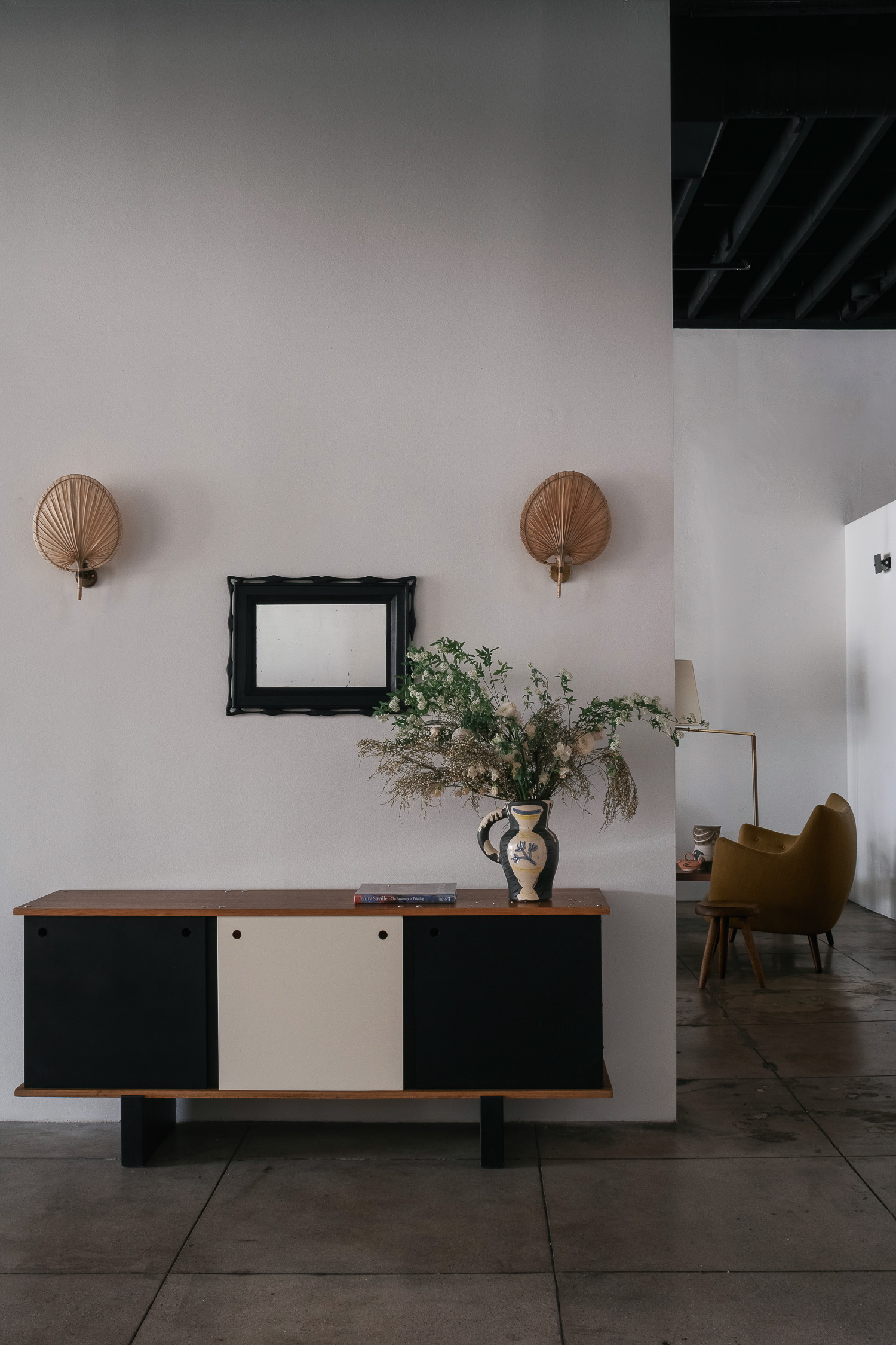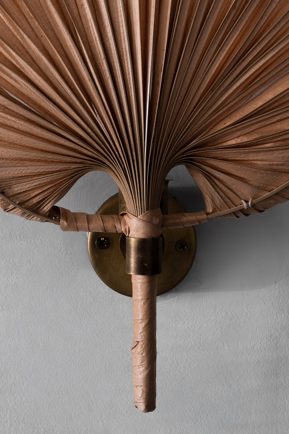 Palm Leaf Sconces Italy, 1990's H 16.75 x W 11.75 x D 4 Condition - wear consistent with age. 120V US Wiring. *6 Sconces available. ITEMS SIMILAR Akari Floor Lamp S2 with Marble BaseFixed Single Arm Wall SconcePair of Spanish Urn Table LampsMurano Floor Lamp