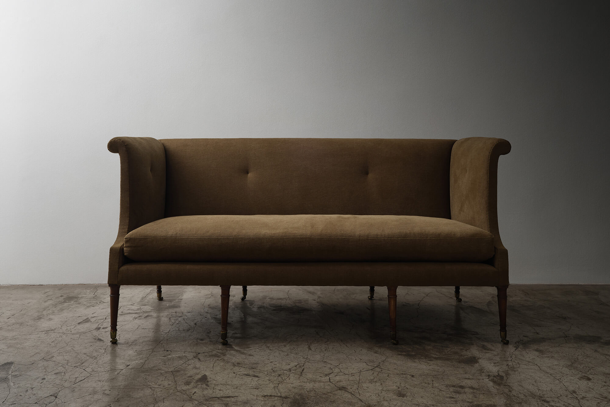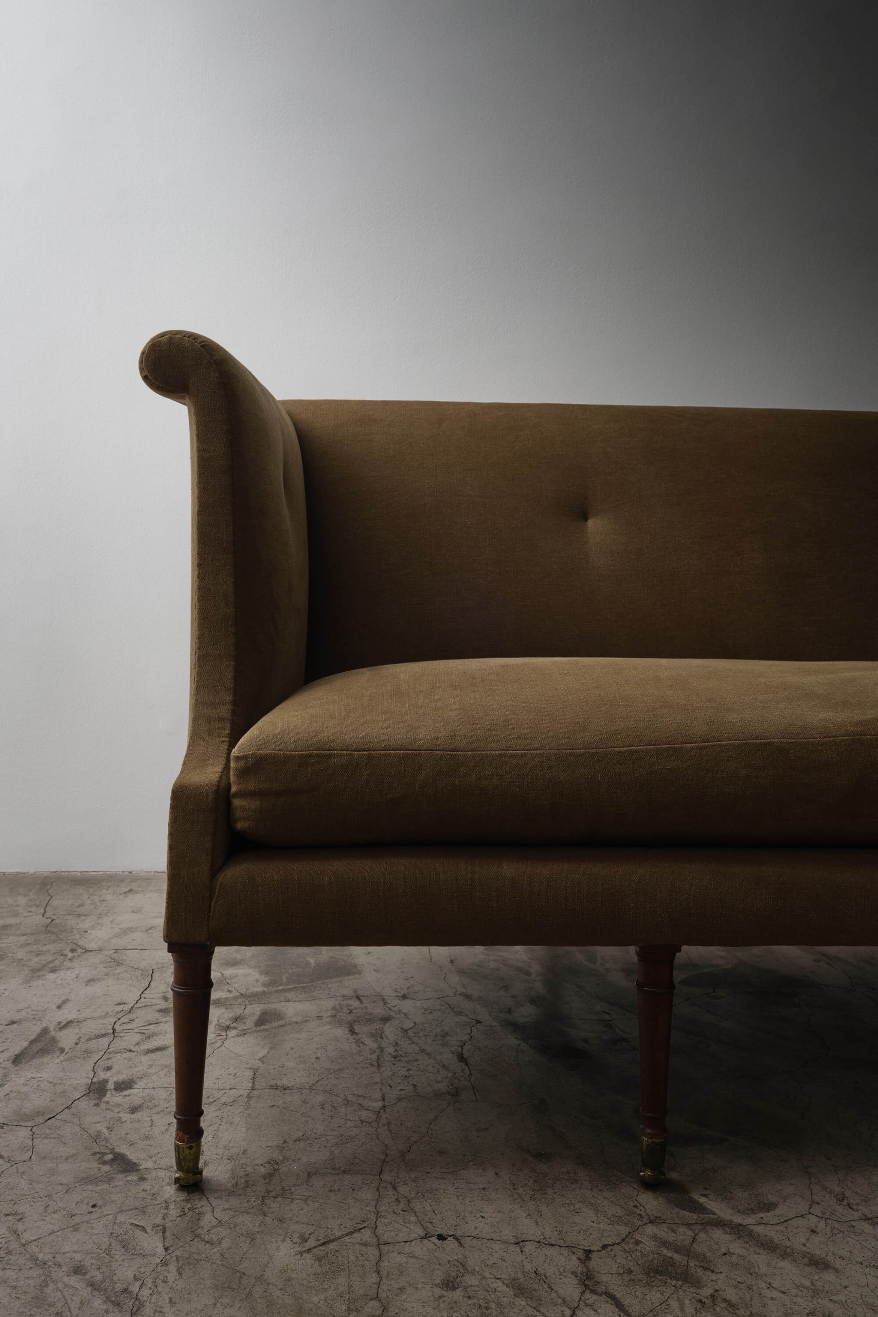 Regency Sofa in Linen England, Early 1800's H 40.25 x W 82 x D 29.5 Condition - wear consistent with age. ITEMS SIMILAR Hand Carved Three Seat Gustavian SofaDanish Two Seat SofaTwo Seater Sofa in Looped AlpacaThree Seater Leather Sofa