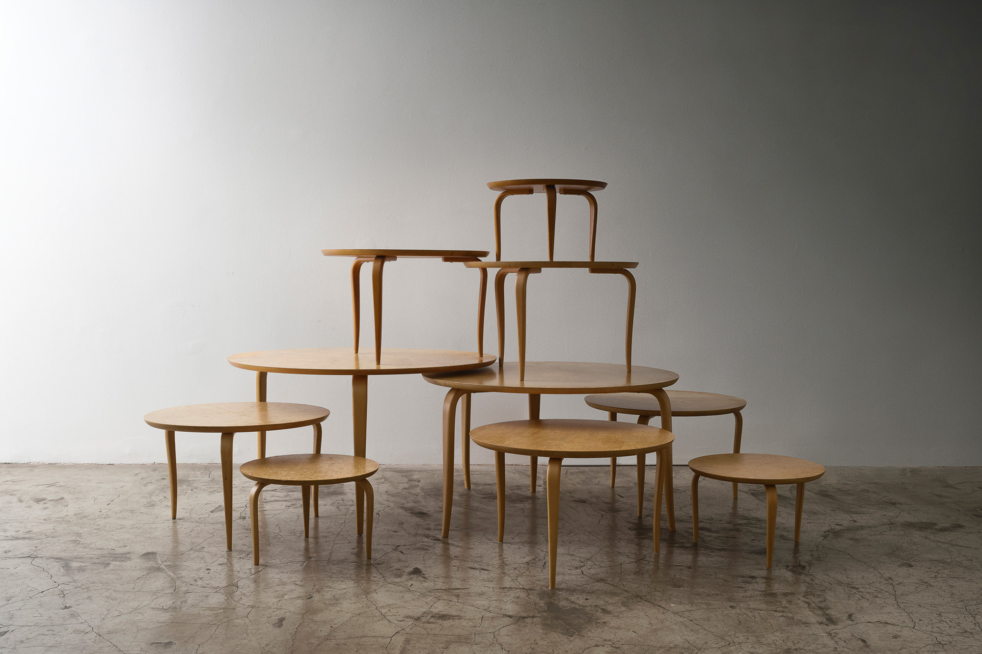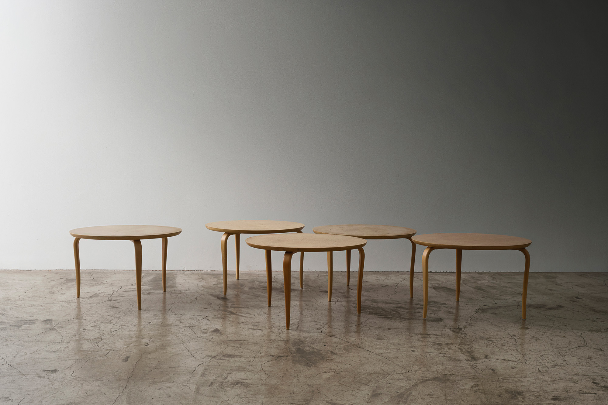 Set of Annika Tables Bruno Mathsson Sweden, 1932 Various Sizes Condition - wear consistent with age. Small: H 11.25 x D 17.75 Medium: H 16.5 x D 25.5 Large: H 23.25 x D 41.25