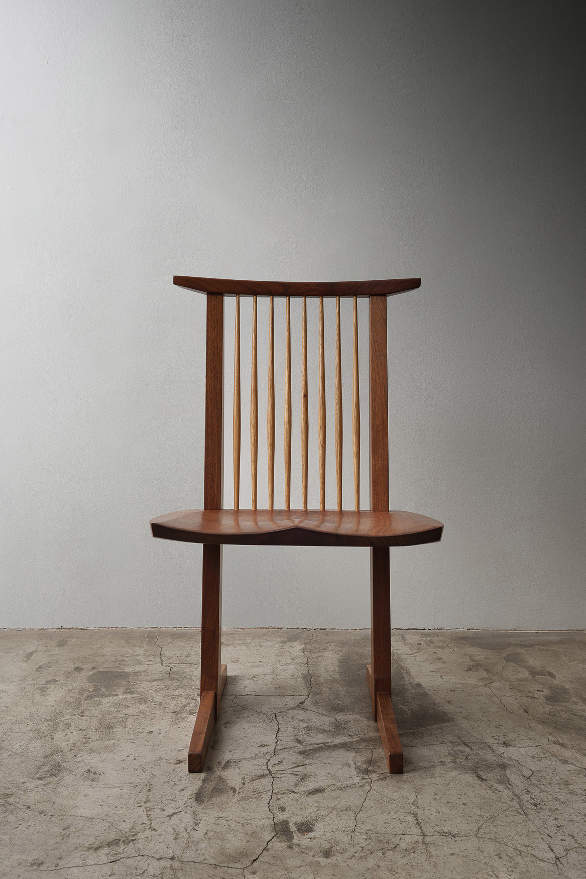 Set of Conoid Chairs Mira Nakashima New Hope Pennsylvania, 1997 H 35.5 x W 20.75 x D 21.5 x SH 17.5 Condition - wear consistent with age. ITEMS SIMILAR Set of Musician’s ChairsGroup of Period Gustavian “Bali” ArmchairsT Back Dining ChairsPair of Danish Cabinetmaker Armchairs