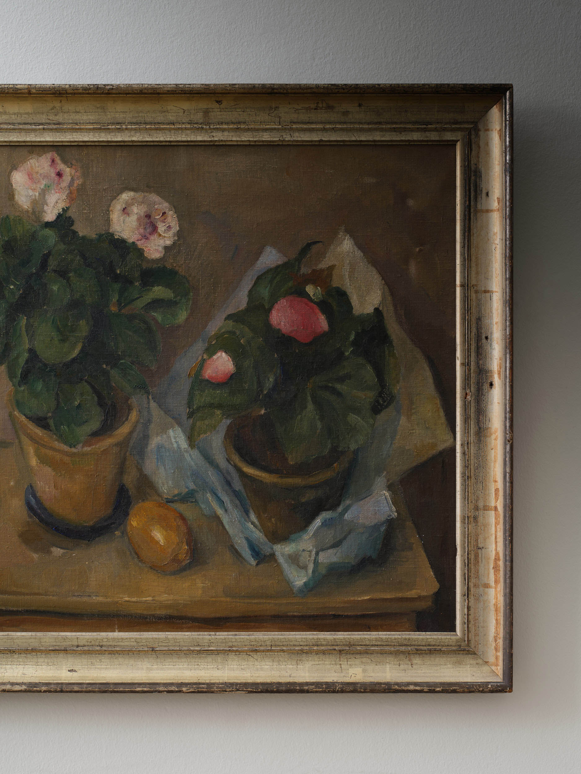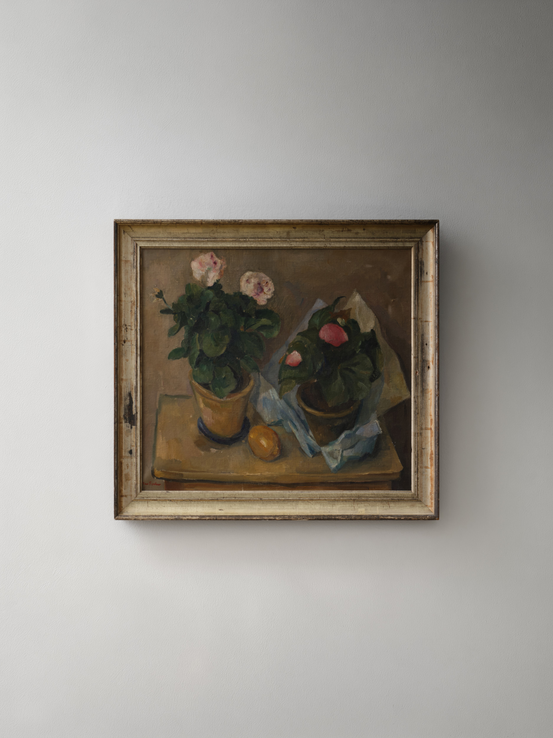 Still Life with Potted Plants and Orange Carl Fischer Denmark, Early 20th Century H 26.5 x W 29 Condition - wear consistent with age. Oil on Canvas. Signed on Face. ITEMS SIMILAR ‘Amazonic Buffet Fever-Dubversion’Untitled‘Visiting Musician’‘SB 45, Point Rare, Point Pluriel, Point Fin’