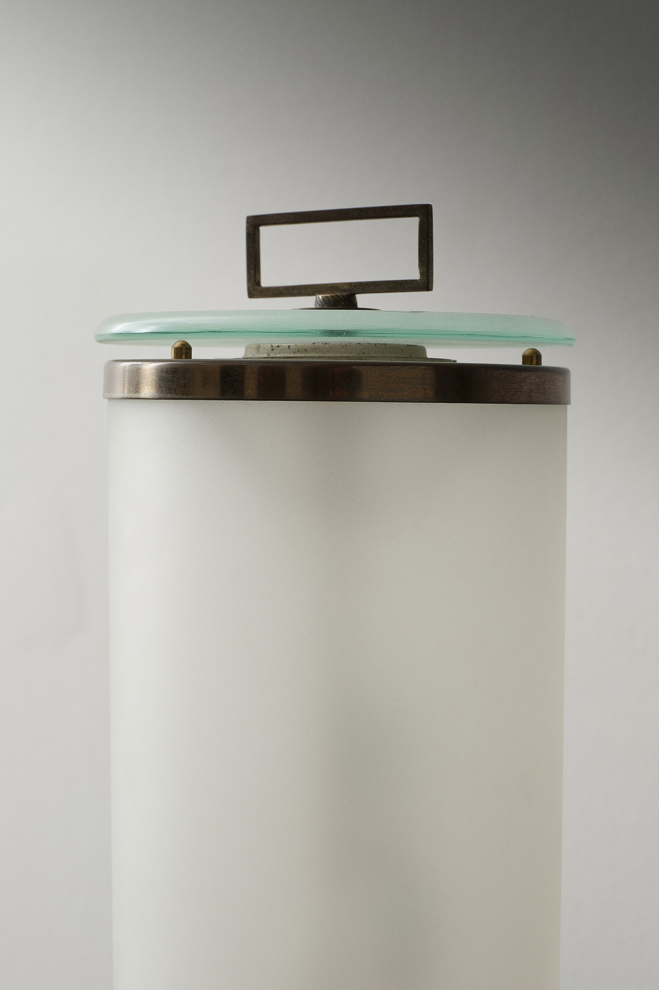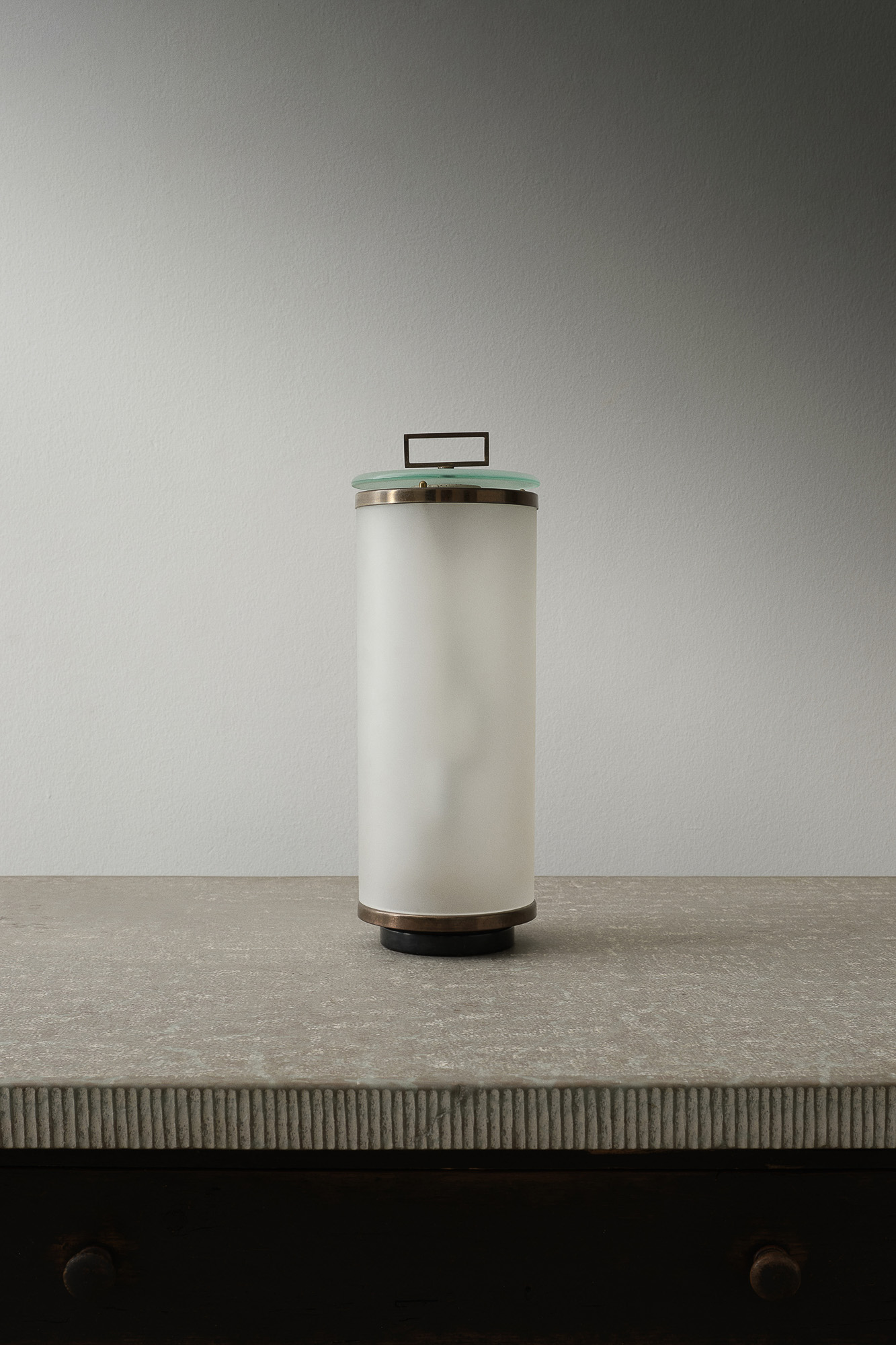 Table Lamp Oluce Italy, 1950's H 16.25 x W 5.75 x D 5.75 Condition - wear consistent with age. 120V US Wiring. ITEMS SIMILAR “PH-3/2” Oblique Floor LampGeorge III Blue John Urn On Pedestal LampFrosted Glass PendantHammered Iron Pendant
